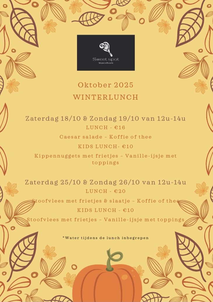 Telkens op zaterdag en zondag van 12u-14u. Water tijdens de lunch inbegrepen + 1 koffie na de lunch.